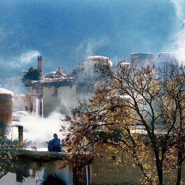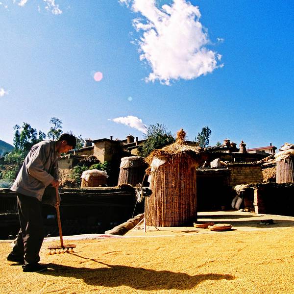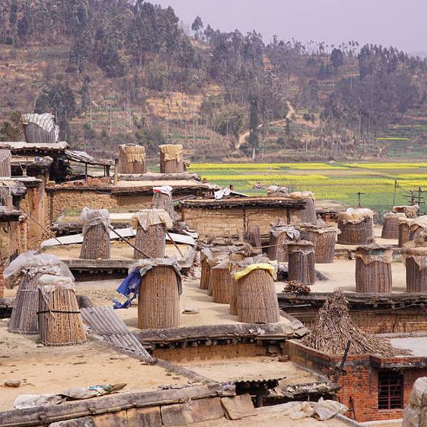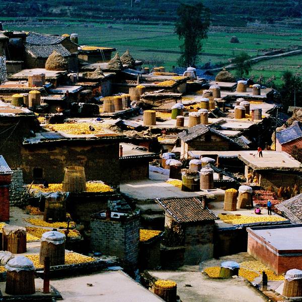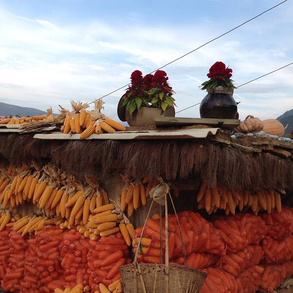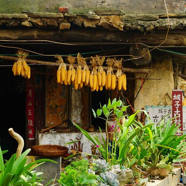 远远看去城子古村。似乎显得质朴而原始,古老的村落沉淀了多少沧桑的过往呢?这座“亚洲摄影之乡”果然名不虚传。山围绕了村子,村子映衬了山色,真真是别有一番风味。“去年今日此门中,人面桃花相映红,人面不知何处去,桃花依旧笑春风”原来当年接待书生的美人,藏在了村子了。房顶有序排列的形似箩筐的是什么东西?对于很好奇的我来说肯定要一探究极,原来这是村民用来装粮食的用竹子围起来的“小粮仓”