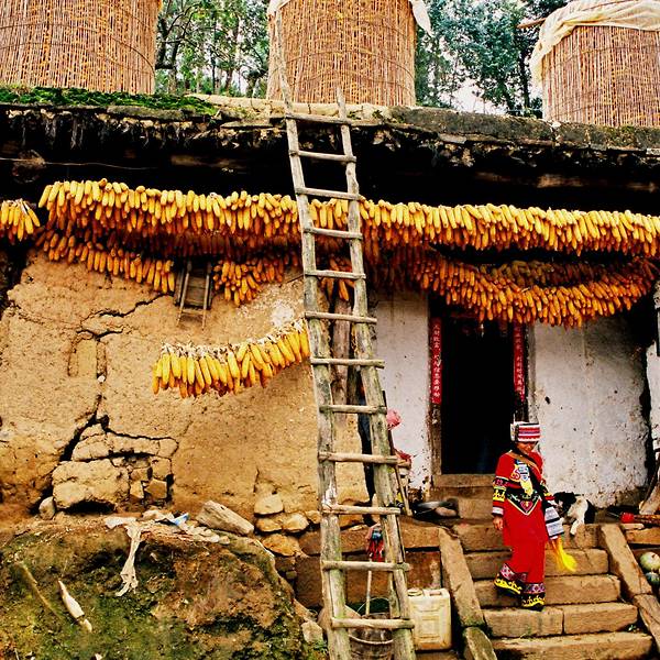 走进一看 果不其然,里面满满的包谷,金灿灿的见证了村民们的辛勤劳作。古朴的青石板,走过多少年的沧桑,沉淀多少的历史过往,这的一切显得神秘而怀旧,等待着我们一层一层的剥开它呢?房子看上去有些古老而悠长,仿佛穿过时空隧道,回到了远古时代。房屋看上去宁静祥和,我想这里生活的人们一定朴实。来到城子给我的感觉,这是一座历史的产物,恬静、隽永。质朴的房屋散发着独特的魅力,就像亭亭玉立的美人,耐人寻味快看楼上有美女!这是在干嘛呢? 展开