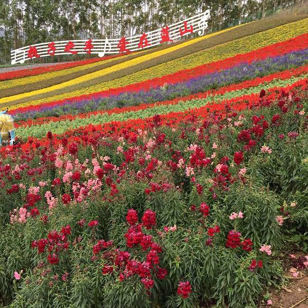 玛琪雅朵花海位于十里蓝山景区近入口处,进入景区后会看见一大遍花海,不同颜色的花朵栽在不同的地方...