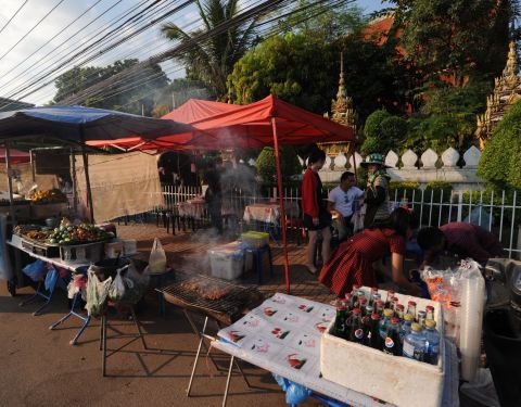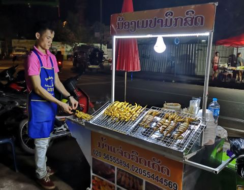 万象湄公河旁边的一个公园,这里晚上会很热闹,路边都是夜排档。来来往往的游客非常多。摊位也比较多万象湄公河旁边的一个公园,这里晚上会很热闹,路边都是夜排档。来来往往的游客非常多。还可以有很多街头美食可以吃。摊位也比较多。