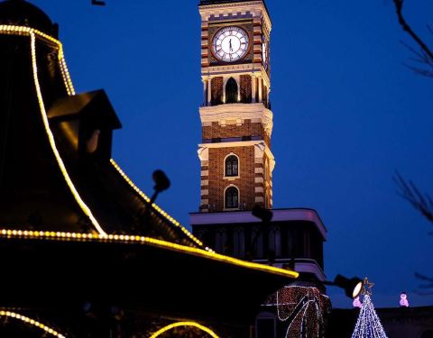 世界上现存最大的蒸汽钟,每隔15分钟会演奏悦耳的音乐。