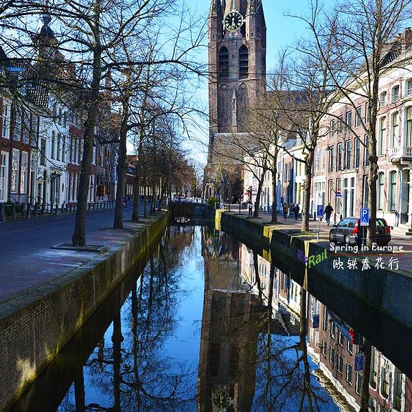 Delft是个很幽静的地方 典型的荷兰式建筑沿着河道分布,一片祥和的感觉 听说这个地方有很悠久的历史 远处的教堂有点斜,是真的斜!哈哈