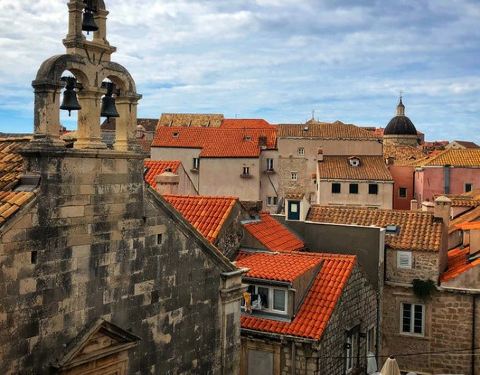 几乎杜普洛夫尼克老城的各个角落都能望见这钟楼,棕褐色的圆顶在砖红色的屋脊中很是显眼,映衬着蔚蓝...