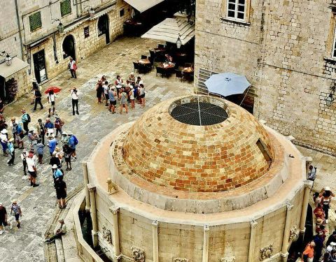 大欧诺佛喷泉算是独步罗夫尼克老城的一个标志性建筑,安全的雕刻很有特点,整个外观犹如一个圆形的蒙...大欧诺佛喷泉算是独步罗夫尼克老城的一个标志性建筑,安全的雕刻很有特点,整个外观犹如一个圆形的蒙古包,虽然去的那天没有喷水,但是出水口依然有凉水流出,可以直接接着喝,用来洗手洗脸非常舒服。