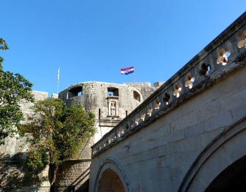 派勒城门是杜布罗夫尼克的主要出入口之一,位于老城西部派勒城门是杜布罗夫尼克的主要出入口之一,位于老城西部。外城门修建于1537年,是文艺复兴样式的拱门,上方有城市的保护神圣•布雷斯的雕像