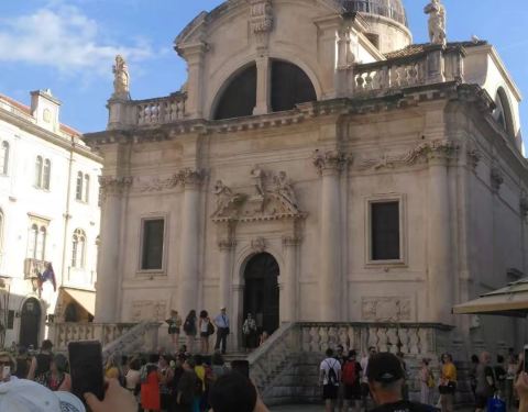 教堂前有小广场,周边分部着几个餐馆,咖啡厅,适合歇息在杜普洛夫尼克古城南部,离港口不远,可免费进入,不时有游客和当地人前来,但不像钟楼那边拥挤杂。教堂前有小广场,周边分部着几个餐馆,咖啡厅,适合歇息。