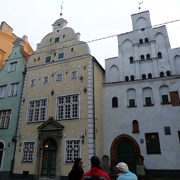 位于教堂广场后面的三兄弟之屋,在Maza Pils 街上,分别是17、19和 21号。 三幢建筑分别代表了里加在中世纪不同时期的建筑风格,这也是如今里加保存较完整的石头建筑,也是现存非常古老的由石头建造而成的建筑。这些建筑的风格有点像布拉格的黄金巷,展示了当地人利用狭小的土地空间的能力。 建造早期的是白屋,建造于15世纪末。 第二个建造的是1646年完成的黄屋,而第三座绿屋于17世纪末建造。三栋建筑象征了拉脱维亚的历史文化厚度。在1995年时,白屋终收为国有,建设成为拉脱维亚建筑博物馆。 这三座屋子的名称与爱沙尼亚首都塔林(Tallin)的“三姐妹屋”相呼应。