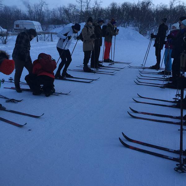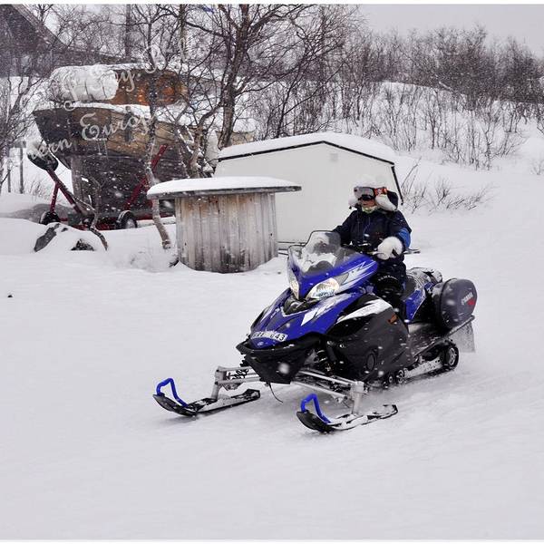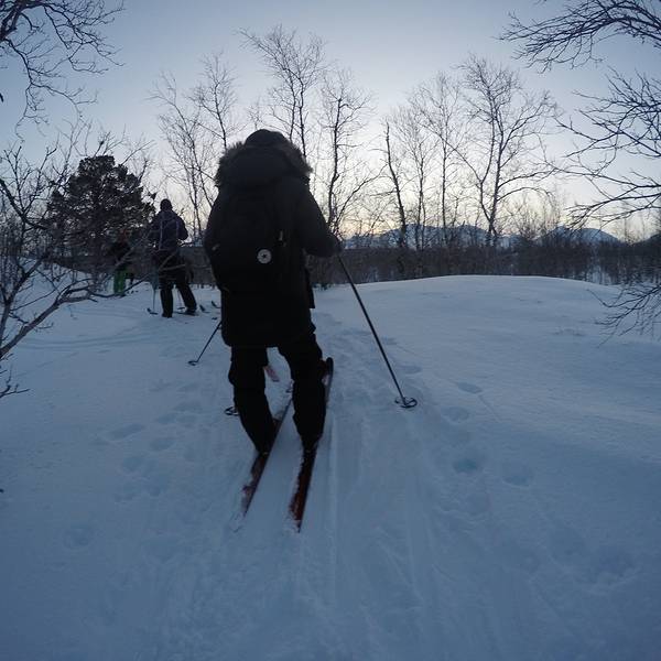 雪板并不是为了滑,而是为了防止你在那么深的雪地里陷进去。而事实,并不是- 因为冬季的北欧下午三点左右就天黑了,所以大家要进行任何活动(除了极光),都要趁早。我们报名的时候看见第二天早晨还有一个滑雪的活动有空位,于是决定第二天一大早参加这个滑雪的团。