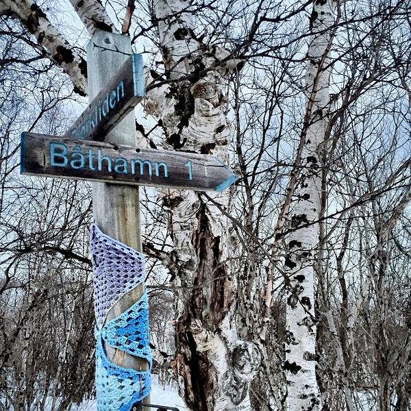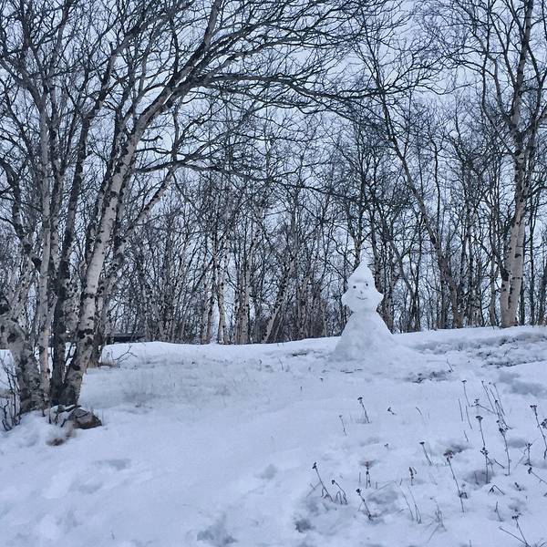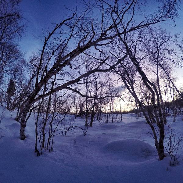 我们沿着一条小路和树标往树林深处行进,看地图我们是沿着一条小河,然后都一个...- 天没亮我和嘉姐,霓虹就去走Abisko National Park 的 King's Trail 徒步线路了。虽然天还没亮,但是是个晴天,没有风也不是很冷。
