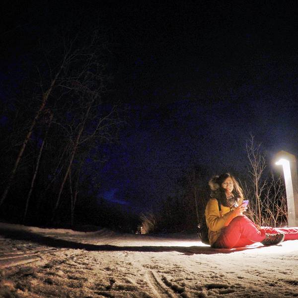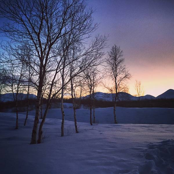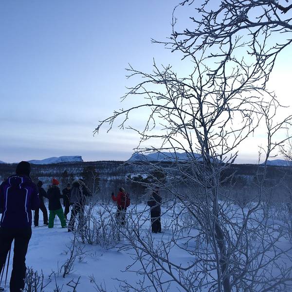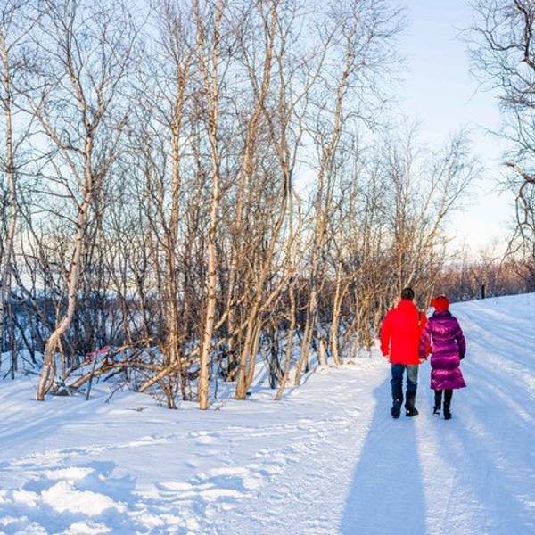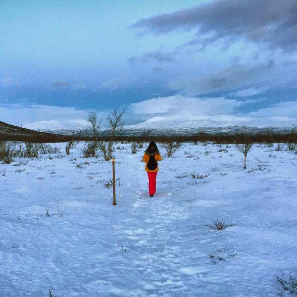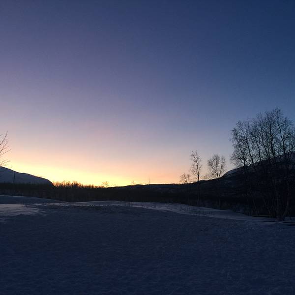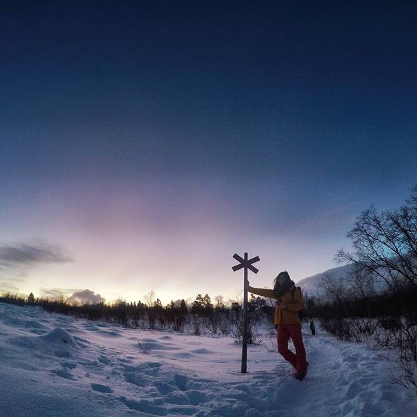 于是我就这样被圣诞老人挑中送了礼物- 天没亮我和嘉姐,霓虹就去走Abisko National Park 的 King's Trail 徒步线路了。虽然天还没亮,但是是个晴天,没有风也不是很冷。