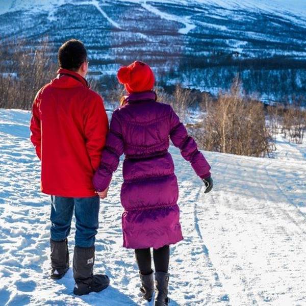 去火车站乘坐列车一路向北,全球最北铁路,到达挪威北极小城Narvik,位于峡湾边,看峡湾壮丽景色,由于享有大西洋暖流,挪威...- 昨天完了与极光合影的梦想,两人美美的睡去,今天是情人节,起个早,出发挪威一日游!