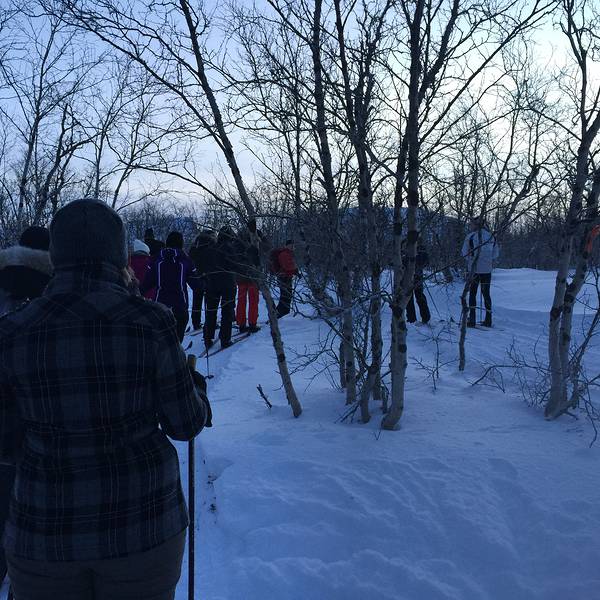 因为我超级爱滑雪,我脑海里的滑雪,是向导把我们领到一个滑雪场或者一座山坡上滑雪。而事实,并不是。。。。这是一场长达三个小时的“恶战”。为什么说是“恶战”,是因为他是每个人发一套雪具,然后由向导带着你,在阿比斯库国家森林公园里暴走三小时!!雪板并不是为了滑,而是为了防止你在那么深的雪地里陷进去。我之前完全没想到,我自认为体力还不错的人,一直处于队伍的最后,向导还一直鼓励我,说good job! 而且这样的团一般不同于极光团,很多亚洲人,这团!全是一个个精装的外国肌肉男们,他们应该从小就在玩,所以特别轻松,我简直在后头哼哧哼哧。 展开