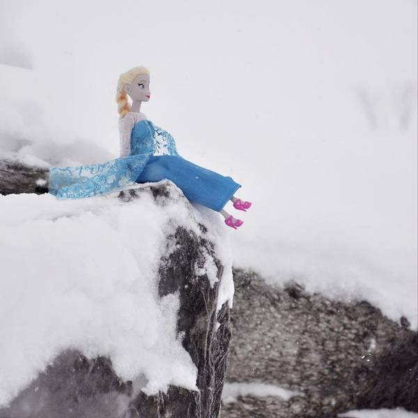 天空是梦幻的粉蓝色,雪地一尘不染洁白无瑕,而且是闪闪发光的。”
