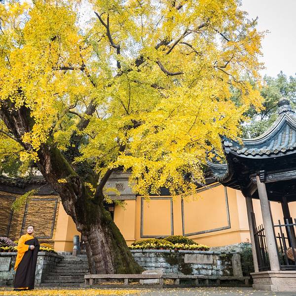 ... 多年的古银杏,可算是无锡市区首屈一指的树中老寿星,每到深秋,漫天飞舞的银杏,引来无数游人驻足惠山寺坐落于锡惠名胜区内,为“南朝四百八十寺”之一,始建于公元423年,距今1580余年,曾列粱溪十大丛林之首。千余年间,惠山寺六次遭灾,最后毁于太平天国战乱年间。至今寺内还保存了大量的文物古迹。有粱朝大...惠山寺坐落于锡惠名胜区内,为“南朝四百八十寺”之一,始建于公元423年,距今1580余年,曾列粱溪十大丛林之首。千余年间,惠山寺六次遭灾,最后毁于太平天国战乱年间。至今寺内还保存了大量的文物古迹。有粱朝大同年间的龙眼泉、唐宋石经幢、唐代听松石床、宋代金莲桥、明洪武银杏、清御碑等。惠山寺内还有一棵树龄600 多年的古银杏,可算是无锡市区首屈一指的树中老寿星,每到深秋,漫天飞舞的银杏,引来无数游人驻足。秋天是银杏树最美的季节。叶子起初是绿中带黄,接着变成了黄绿色,到了深秋,满树都变成了金黄色。黄灿灿的叶子在阳光的映照下,发出了耀眼的光芒。一阵风吹过,那光芒就在树叶间跳跃,仿佛小精灵在欢快地玩耍。除了惠山寺门口600多年的古银杏外,惠山寺内还有一株四百多年的老银杏,比起600年的老态来说,四百年的看上去要坚挺很多,但是都能够真切的感受到它们春秋寒暑里领略岁月的磨砺、饱经生命的惊涛骇浪后的那般从容如磐,霜染的灿烂,淀积的是他们生命的成熟。一大早,工人们忙着清扫飘落在屋檐上的树叶,能看得出他们非常的小心翼翼,而对于璀璨夺目的金黄来说,他们与飘落在地下的叶子一样少被人注意到。 展开