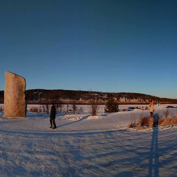 龙江第一湾的门票套票50元/人,交通车票价60/人,合计110元。门票套票包含乌苏里浅滩、龙江第一湾。13:50到达景区换乘中心购票换乘景区巴士,14:20 到达乌苏里浅滩。乌苏里浅滩紧挨着中俄界河黑龙江,由黑龙江冲积而成,面积约50余平方公里,这里江水雄浑壮丽,滩岸一马平川。冬季更是雪卧原野,一片银白世界,是大自然的鬼斧神工,造就了这一天下奇景。传说中国真正的北极在乌苏里浅滩外的黑龙江边上,在此可以看到两块巨石,一块写着“北国擎天石”;另一块写着“恭喜您找到北了”。对面是俄罗斯 展开