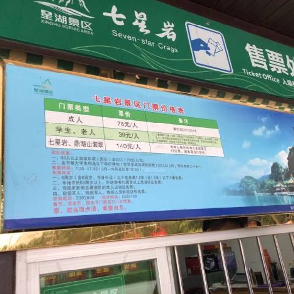 金骆驼 唯一的遗憾就是门票有些小贵。最好的是,门票就是一张制作精美的明信片。有学生票和老年优惠票七星岩位于广东肇庆市区北约2公里处,由五湖、六岗、七岩、八洞组成。景区分为东西南北四个门,东北方还有个仙女湖入口。东门离仙女湖比较近,但这个入口相对而言距离核心景区比较远,所以建议可以从西门进入或者...七星岩位于广东肇庆市区北约2公里处,由五湖、六岗、七岩、八洞组成。景区分为东西南北四个门,东北方还有个仙女湖入口。东门离仙女湖比较近,但这个入口相对而言距离核心景区比较远,所以建议可以从西门进入或者走迎宾大道的北门。南门可以沿着星湖绿道走进去,大致走上半小时左右就可到达。西门可以在宝月公园站坐19路公交车直达。门票似乎年年都在涨,现在的门票已经涨到78元,与鼎湖山的联票则是140元。有学生票和老年优惠票。最好的是,门票就是一张制作精美的明信片。无论一年当中的任何时候,来此游玩,都可以看到不一样的迷人风景。唯一的遗憾就是门票有些小贵。所以许多人可能来过一次以后就不再来了,肇庆市民建议办年卡,100元两年使用。