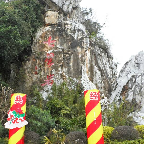 七星岩景区内七座挺拔秀丽的石灰岩山峰布列如北斗七星,故名七星岩。它分南北两列,南列由东而西为阆风岩、玉屏岩、石室岩、天柱岩、仙掌岩等,唯阿坡岩独峙北部。