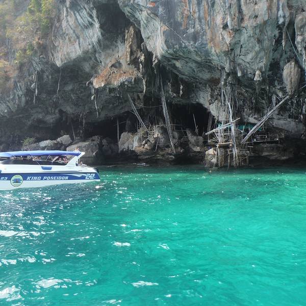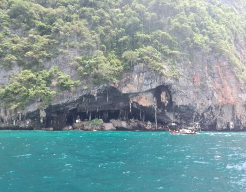 实用 而且我对进入洞穴看燕子窝兴趣不大,不过洞内还有各式各样的钟乳石,有兴趣的朋友也可看下,因为我从...维京洞因洞内栖息着众多海燕,盛产燕窝而闻名,又被称为“燕巢洞”。对于我来说,这里最吸引人是两点,一是如果你只是在外围观看,可以看到这里的海水颜色美丽、干净透彻,在京维洞陡峭的山体、翠绿的植物映衬下...维京洞因洞内栖息着众多海燕,盛产燕窝而闻名,又被称为“燕巢洞”。对于我来说,这里最吸引人是两点,一是如果你只是在外围观看,可以看到这里的海水颜色美丽、干净透彻,在京维洞陡峭的山体、翠绿的植物映衬下份外美丽,也颇有层次,浮潜挺赞滴。二是如果你想进洞壁观看,据说里面刻有史前人类、大象、船只等壁画,尤其是各种船只,有欧洲、阿拉伯、中国等不同地方的古船,还有蒸汽轮船,会不会有世界海船展览的感觉啊。 我们只在船上看看,没有进洞。因为景点较小,参观的游船也比较多,而且我对进入洞穴看燕子窝兴趣不大,不过洞内还有各式各样的钟乳石,有兴趣的朋友也可看下,因为我从桂林到云南已经看过不少美丽多姿的钟乳石,所以相对于它周边的情人沙滩、通赛湾,我对这里兴趣不大。近观,可以看到洞穴入口处有一些的竹子,估计是采摘燕窝用的,师傅都是傍晚之后过来工作,一年只有两三个月的时间。这里是属于泰国的国宝,周围还有真枪实弹的守卫守护,由此可见一斑吧。我们报的一日游是跳岛游,这个是包括在景点之中,但不入内参观,有兴趣入内参观的朋友可以报包含入内参观的那种,也可以包条长尾船自行掌握时间,如果人多些,商量与规划好去哪些岛(主要看路途远近与时间长短),700-1500泰铢的船费,平均到人也不贵,也相对更自由。 展开
