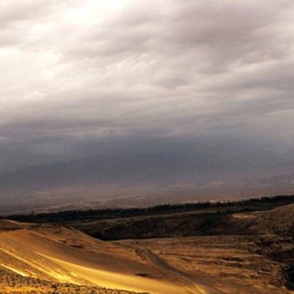 吐鲁番盆地四周为山地环绕,吐鲁番盆地位于(90E°、43N° )附近,北部的博格达山和西部的喀拉乌成山一段,高度都在3500~4000米之间。吐鲁番盆地中国最低的内陆盆地,属大陆荒漠性气候,干旱炎热。吐鲁番地区旅游、文物资源丰富。已开发的旅游景点16个,其中国家5A级景区1处,4A级景区4处,3A级景区3处;有中国国家级文物保护单位9处,自治区级文物保护单位36处,县(市)级文物保护单位179处。吐鲁番是古丝绸之路上的重镇,有四千多年的文化积淀,曾经是西域政治、经济、文化的中心之一。已发现文化遗址200余处,出土了从史前到近代的4万多件文物,从已知的出土的文物来看,吐鲁番至少使用过18种以上的古文字、25种语言,大量的文物和史实说明,吐鲁番是世界上影响深远的中国文化、印度文化、希腊文化、伊斯兰文化四大体系的交汇点。