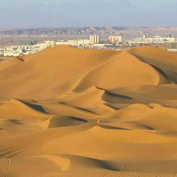 库木塔格沙漠,50年来沙漠没有近1尺,绿化也没有退一尺,沙漠摩托很刺激。滑沙也有意思,但要掌握方法。