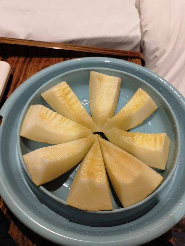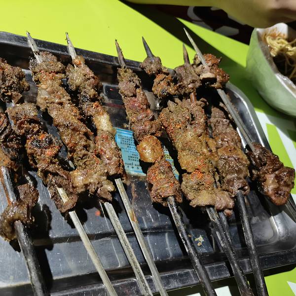 到吐鲁番,安顿好酒店就开始觅食。今天这家饭馆有舞蹈表演,排名第一的菜是脆皮烤羊腿,我们三个怕吃了羊腿什么都吃不了,只好放弃烤羊腿。这就是排名第一的脆皮烤羊腿,看着一般,我们还是回家吃自己做的烤羊腿吧。卡瓦斯好喝,油包肝,腰子味道不错,使得神兽又解锁新吃食。因为从酒店到饭馆路上看到夜市,因此只每样点一点儿,垫底儿,又到夜市继续吃。接着肉串,神兽加碗凉面。老样子,来个水果给今天收尾,新疆的各种甜瓜太甜,齁甜。 展开