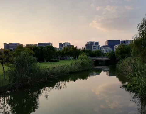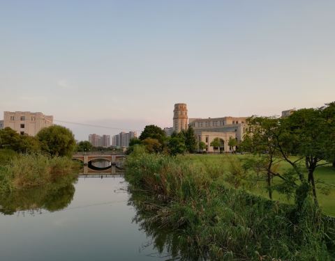 复旦大学江湾校区,宁静隽永,生机盎然,既蕴含新古典浪漫主义的优雅,又散发着现代气息的崭新校区。距离地铁口很近,步行即达。目前还没有完全建设好,校园里郁郁葱葱,草木茂盛,人工湖很漂亮,草坪很平整,还有一条小河,河边很多水生植物。总的来说环境不错,逛逛可以的,缺点就是太新了,缺乏历史底蕴。