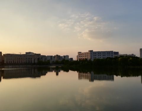 欧式的建筑,走进校园就能看到一大片湖,水天相接,蓝天白云,真的很美欧式的建筑,走进校园就能看到一大片湖,水天相接,蓝天白云,真的很美。校园很静,而且建筑很美,与老校区相比各有各的特点,都很喜欢。