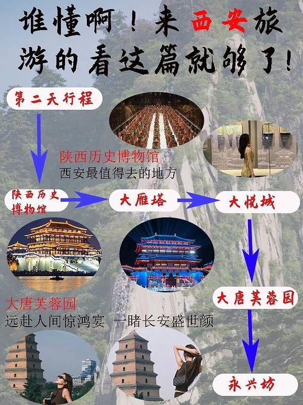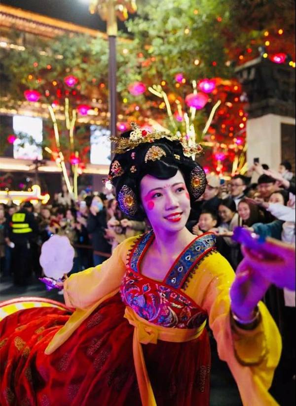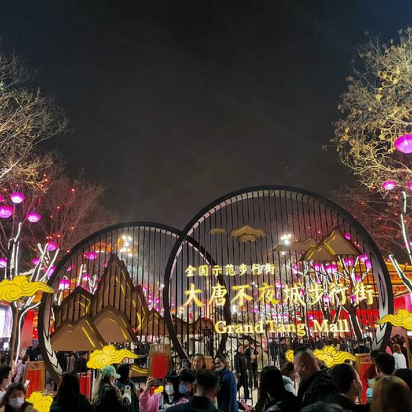 大唐不夜城的中轴景观大道是一条约1500米横贯南北的中央雕塑景观步行街,其上分布着盛世帝王、历史人物、英雄故事等九组主题群雕,立体展现大唐帝国在宗教、文学、艺术、科技等领域的地位并彰显大国气象。 大唐不夜城以大雁塔为依托,北起玄奘广场、南至唐城墙遗址公园、东起慈恩东路、西至慈恩西路,贯穿玄奘广场、贞观文化广场、开元庆典广场三个主题广场,拥有六个仿唐街区和西安音乐厅、西安大剧院、曲江电影城、陕西艺术家展廊四大文化建筑。大唐不夜城晚上灯火璀璨,光影中的仿古建筑流光溢彩,气势恢宏,宛如大唐盛世再现。 这里聚集网红玩法,重点呈现炫彩、梦幻和科技感,利用大场景装置,打造时尚、动感的交互体验馆,为年轻潮流的人群,提供推崇的拍照场所。在亲子科技区,通过场景形象展现、现场动手操作,来启发孩子们的想象力、创造力,将游戏与能力培养、体验收获相结合,是亲子游玩的好场所。