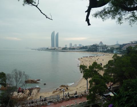 胡里山海滨浴场位于厦门环岛路上,旁边就是胡里山炮台景区,海滨浴场交通方便,有环岛旅游观光巴士可以直达,沙滩上人很多,水质和环境不算太干净。但位置绝佳,这里可以看见厦门的地标建筑---双子座大楼。参观完胡里山炮台,再到旁边的海滩上玩玩水,吹吹海风,看看海景,暂时远离城市的喧嚣,还是很惬意的