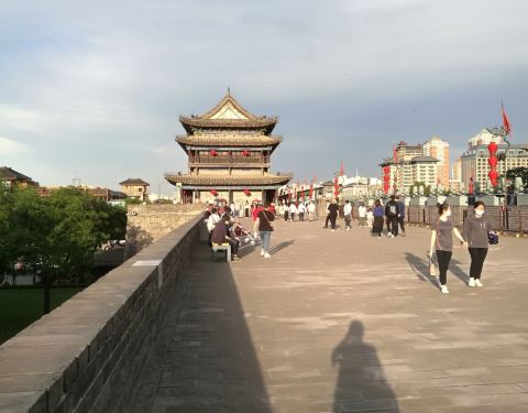 国庆期间人很多,建议赶早,尽量早点出门,因为人流还没有上来。乘坐地铁2号线,永宁门有一站,建议从D1或D2口出来,远远就能望到永宁门了沿着永宁门前面的大路向正北方前进,永宁门越来越近,分享一下门前两侧均有售票处,我去的时候人还不是很拥挤,游览起来宽宽松松的。票价54元,有点小贵,1.2米以上儿童半价,65岁以上免票,免票在售票处前10米处有个桌子,凭身份证换取那个贴有二维码的免票凭证。永宁门还有吊桥,在护城河上,这个吊桥在全国的古城中也不多见吊桥两侧就是护城河了,在冷兵器时代,有高大的城墙和护城河,基本很难逾越了。护城河如今尽享和平景色,有很多鸭子和大白鹅在河里戏水过了吊桥就进入永宁门了箭楼下面有日冕,古代的时钟过了箭楼就是瓮城,顾名思义“翁中捉鳖”的意思,古代的防御体系可见一斑。上了城墙,豁然开朗,可以租借自行车,2小时90元单人,120元双人骑的,有兴趣可以试试,也可以乘坐电瓶车120元一张票,绕城一圈。如果体力好的话,建议徒步走走,感觉会更好一些城楼南面下面就是=著名的碑林博物馆了,可以游玩永宁门后就近去看一看。我的旅游时间:2016年10月5日上午。