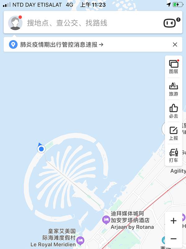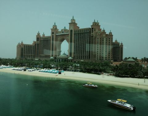 迪拜政府耗巨资,在碧波如洗的阿拉伯湾上建造的一系列人工岛屿群,则堪称典范。从空中俯瞰,朱美拉棕榈岛(PalmJumeirah)形似棕榈树干。它是世界上大的陆地改造项目之一,号称“世界第八大奇迹”。除岛上无数精美的酒店和度假村外,您还可以登上随处可见的私人旅游公司提供的游艇或快艇,畅游于海上,或者跳上驶向棕榈岛亚特兰蒂斯酒店的棕榈岛轻轨,饱览沿途瑰丽风光。上岛交通从迪拜市中心到朱美拉棕榈岛的棕榈岛亚特兰蒂斯酒店有一条只有三站的棕榈岛观光缆车,也就是轻轨。乘坐轻轨可以很好的参观这座世界奇迹的人工岛。若选择轻轨,途中首先经过的是一批住宅,多数购买者都是外国人,本地阿联酋人很少购买。穿过住宅建筑群,就抵达了轻轨的第一站。继续向前,两边就是棕榈岛形状的人工岛,每片“棕榈叶”就是一条别墅建筑群,每座别墅前都是人工的沙滩海湾。在轻轨上,你可以看到还有几片“棕榈叶”是光秃秃的,上面没有建筑物,有的只是刚填好的人工岛。这是因为世界金融危机后,资金缺乏后继造成的。继续前行,快到月牙形堤坝时,便可见到棕榈岛亚特兰蒂斯酒店和迪拜乐高水上乐园。只有预订该酒店的客人可进入,所以非酒店客人只能在外眺望了。来到月牙形的堤坝上,可以看到一望无际的大海,回头便可看到棕榈岛亚特兰蒂斯酒店的全景,这里也是拿酒店做背景拍照的好地点。
