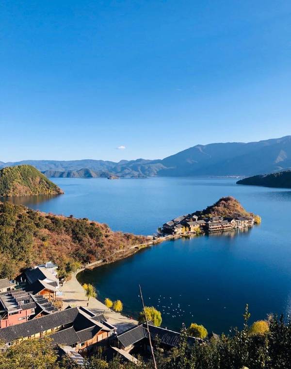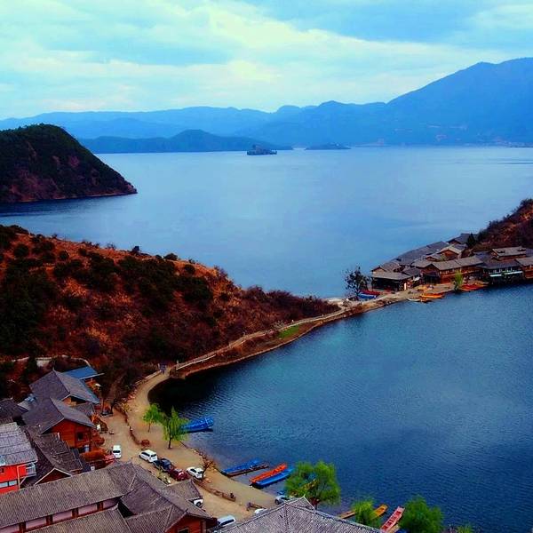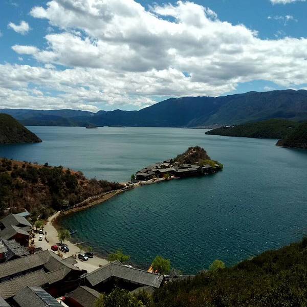 如果说丽江古城是《欢乐颂》中的富家女曲妖精, 花枝招展、热情奔放。那么泸沽湖就是《欢乐颂》中的乖乖女关雎尔,蕙心兰质、含蓄内敛。泸沽湖是丽江的一块瑰宝。而泸沽湖最美的地方莫过于里格半岛。里格半岛位于泸沽湖的北侧,东西南三面环水。距离大落水约11公里,拼车10元。里格半岛在泸沽湖景区内,票价包含在泸沽湖景区门票内。(泸沽湖门票:100元 学生证半价)里格半岛的北面是与陆地接壤的一条小路,只有2米宽。小岛上有几百年历史的摩梭民居,也有几家景色优美的临海客栈。