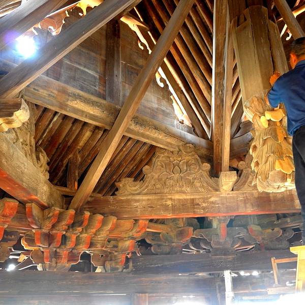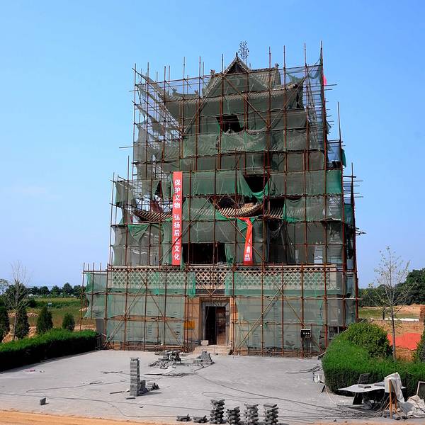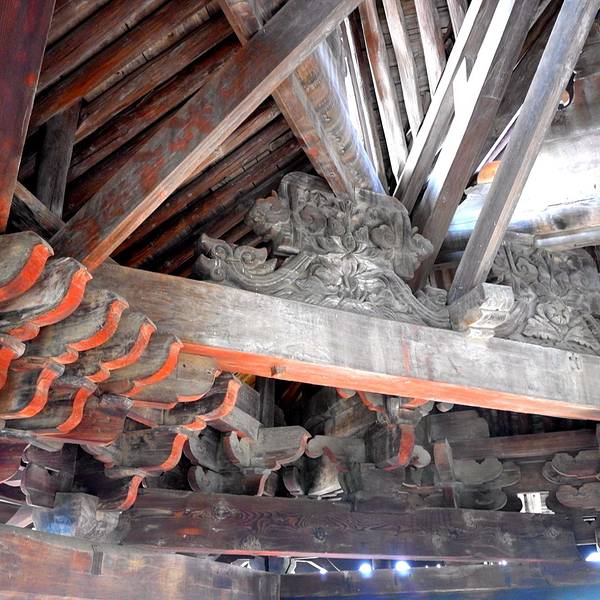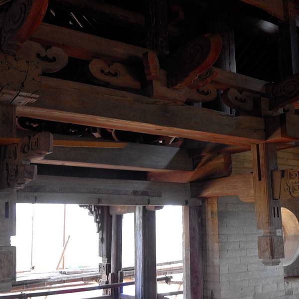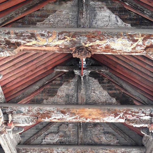 后土祠不仅有秋风楼,山门、舞台、献殿、正殿、碑亭、东西五虎殿华丽精巧,而且布局极有创意,有三座舞台前后 形成“品”字型格局,为珍贵的全国独例。山门背面就是一座,再向前还有两座。