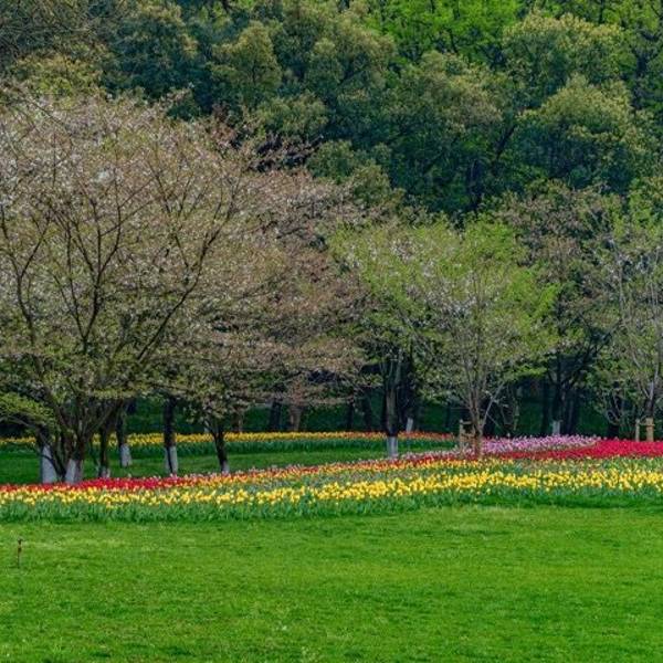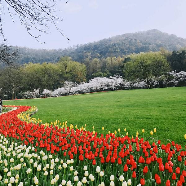--------------------------------------------------------------------------在樱花开的同时郁金香也开了,从道路的一边拍过去,樱花和郁金香,前后呼应很美!郁金香是沿着道路两旁种的,蜿蜒曲折,从一头拍过去整体十分工整!这里给大家总结下,太子湾的樱花是杭州最大的樱花,与此同时也是杭州最知名的地方,人流量超大,不推荐大家周末去,基本上周末都是人挤人!平时去人也蛮多的,还需要大家自己去找角度拍摄!太子湾对面就是苏堤也很漂亮,大家可以一起去看看! 展开