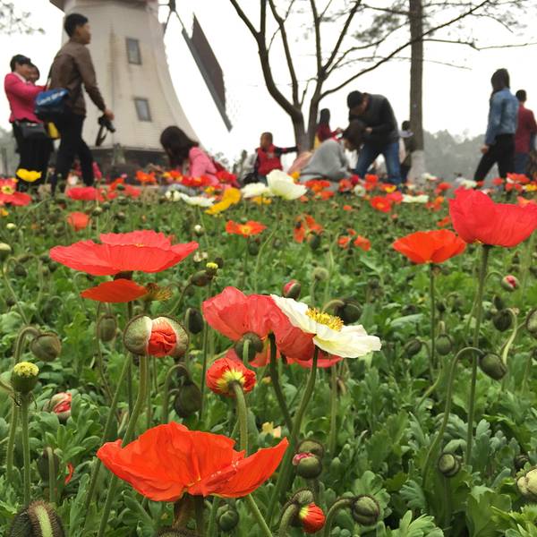 因为还是3月初,樱花尚未盛开,只有一些风信子、郁金香,还有类似罂粟的花朵吸引人群。但任要不要这么多啊~