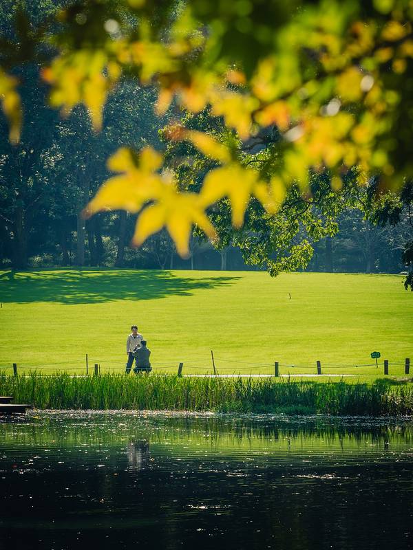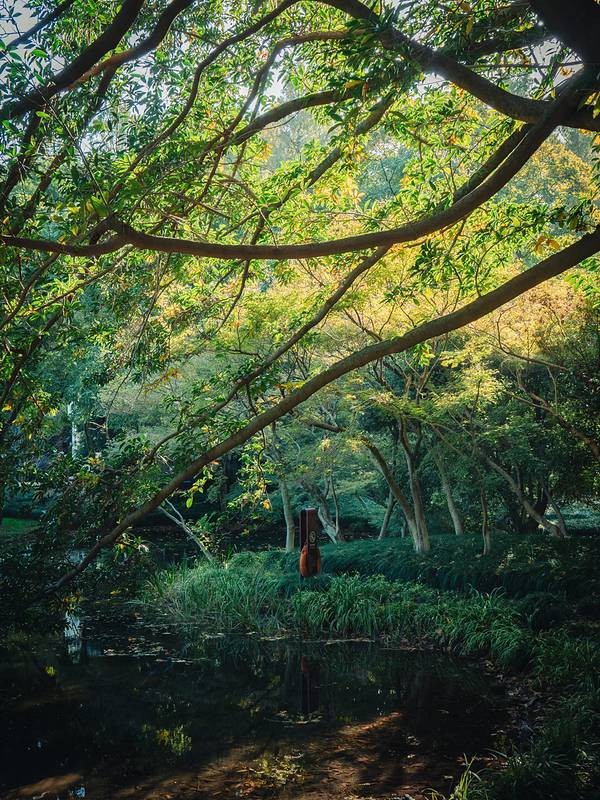 4️⃣ 小土坡上的亭子,枫树初黄,里面向外拍出阳光洒落的美妙画面,气氛绝对满分🍁。