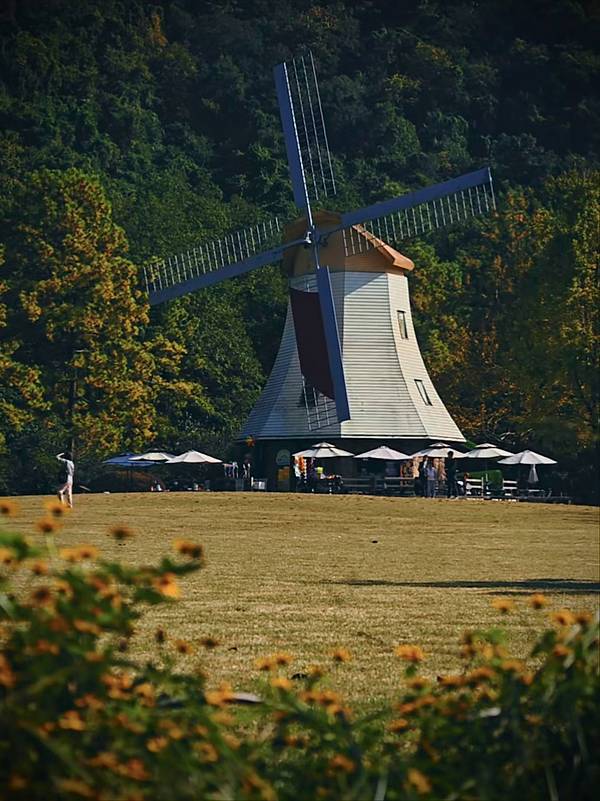 5️⃣ 风车处的草丛有小黄花,蹲在风车对面用长焦拍摄,可以轻松捕捉到自然画面🏞️。