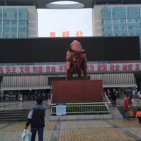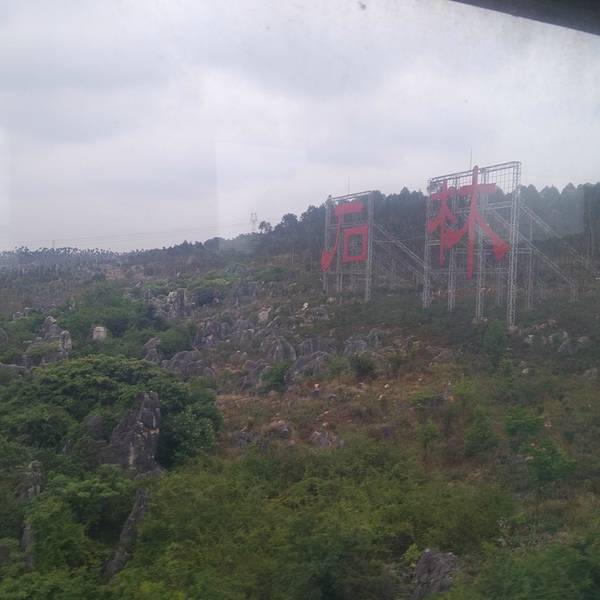 从昆明南站有直接去石林西的动车,石林西有公交车可以直达石林景区。如果时间安排紧凑或者体力好的可以选择从昆明南直接去石林,我们需要休息好才能出发,所以选择第二天再去石林。从昆明站坐火车到老石林站一个...从昆明南站有直接去石林西的动车,石林西有公交车可以直达石林景区。如果时间安排紧凑或者体力好的可以选择从昆明南直接去石林,我们需要休息好才能出发,所以选择第二天再去石林。从昆明站坐火车到老石林站一个半小时,石林站人不多,出站后有一些招揽生意的私家车面包车,我们包了一辆私家车,车主很热情,先帮我们介绍了酒店送过去放下行李,再送到石林景区。站里的这座雕像是牛吗终点是广州哦沿路的大棚其实不只是景区里有石林,没有划入景区的石林应该更多。当沿路发现石林的时候,说明就快要到目的地了哦。