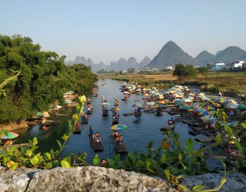 导航遇龙桥~~入住遇龙客栈~~河上漂流,河边吃鱼吃米粉~~惬意~~