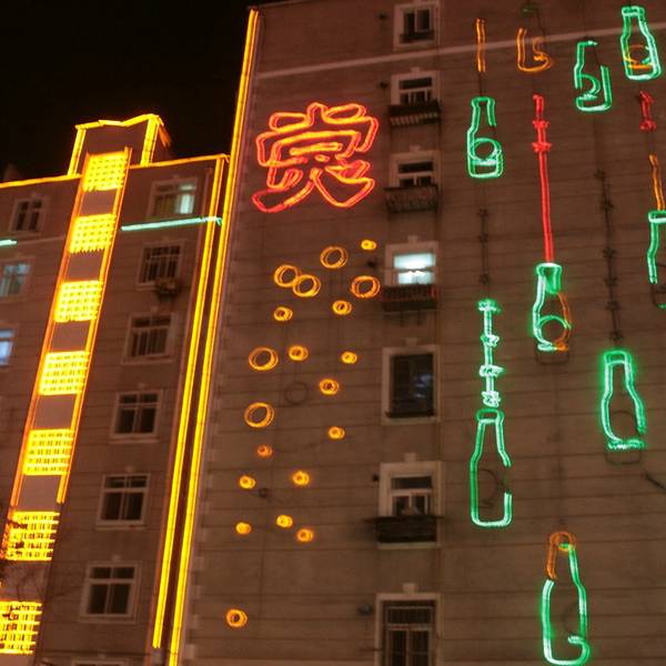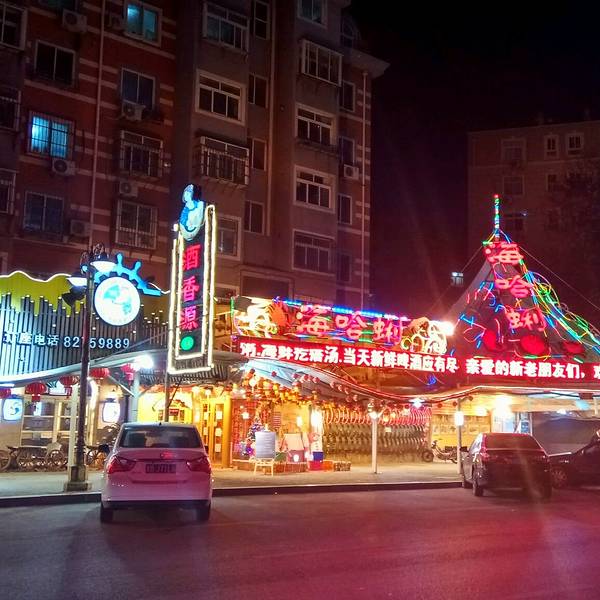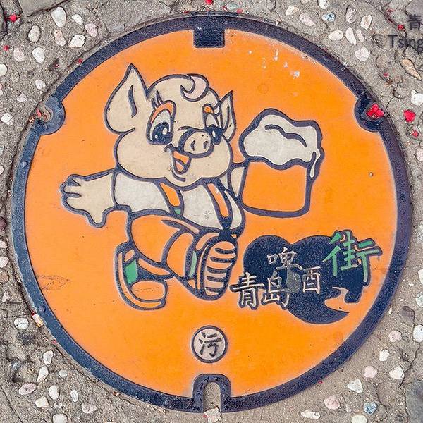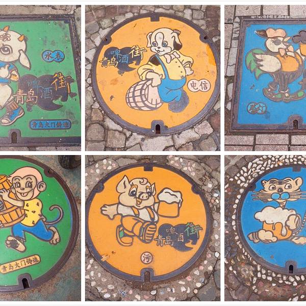 从啤酒厂出来,就是登州啤酒一条街啦! 连绵不绝的海鲜大排档的霓虹灯,这片区域的阴井盖也是特别的萌~也见识了各种啤酒打包的工具,除了尼龙袋,还有塑料瓶,塑料桶!都是有多能喝啊