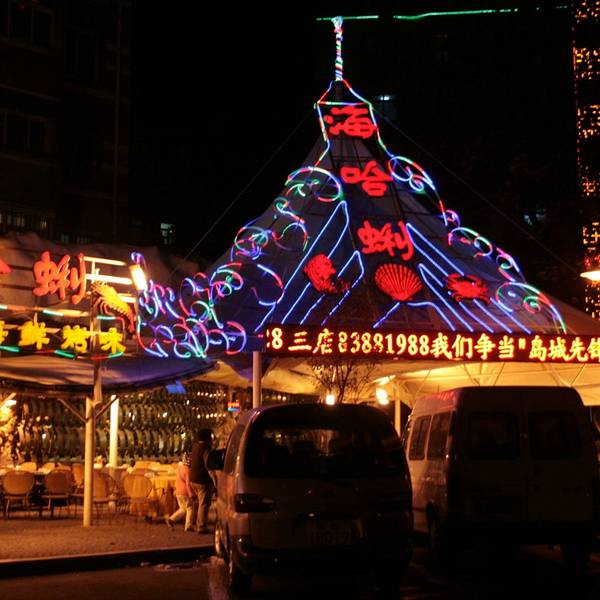 一天的徒步结束,最后乘车去啤酒街看一看,啤酒街有很多大排档,最著名的就是青岛啤酒厂就位于这条街上,还有从网上看到的天幕城。啤酒街上大排档的生意很火爆,以海鲜和啤酒为主,不过相对价格不是很低,所以个...一天的徒步结束,最后乘车去啤酒街看一看,啤酒街有很多大排档,最著名的就是青岛啤酒厂就位于这条街上,还有从网上看到的天幕城。啤酒街上大排档的生意很火爆,以海鲜和啤酒为主,不过相对价格不是很低,所以个人并没有选择在这里吃饭。青岛啤酒厂看上去完全没有工厂的样子,也是隐藏在绿色植物中的小洋楼。天幕城相对比较失望了,觉得没有想象中的好看,里面的店铺基本上也都不怎么营业了,显得冷冷清清的。总共一个小时就可以把这三个景点转遍了,所以大家可以抽个时间来看看就好了。至此,一天徒步游结束。