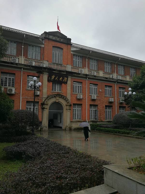 我很好奇,如果一个新生刚刚来这两所大学报道,怎样记住这弯弯绕绕分布在山里的教学楼,宿舍,图书馆和食堂来到 湖南 大学,下山后第一眼看到的就是 湖南 大学的这栋楼,也正是因为这栋楼,让我们知道自己是在 湖南 大学,因为 湖南 大学和 湖南 师范大学都是处于这块地上。
