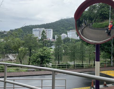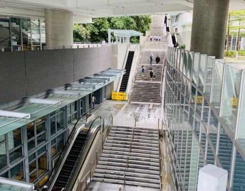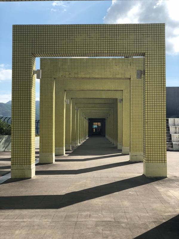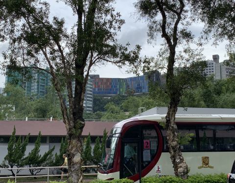 可以说是香港的一处“天空之镜”。我们在校园门口乘坐院内的免费接驳巴士,到新亚书院下车,