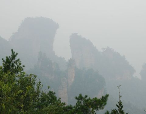 雨太大,雾太大,都看不清楚了一路步行,在某几个平台雾气散去,看到烟雨张家界,又别样的情怀。