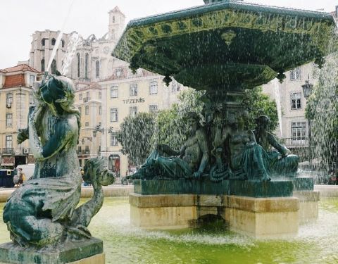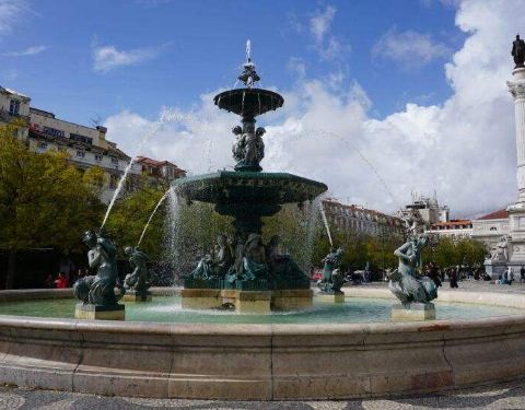 葡萄牙首都里斯本的罗西欧广场,我们看到了葡萄牙特色的波浪形地砖,看上去起起伏伏的,挺美葡萄牙首都里斯本的罗西欧广场,我们看到了葡萄牙特色的波浪形地砖,看上去起起伏伏的,挺美。当然,像大多数欧洲广场一样,当中有两个雕塑,雕塑精美,后来喷泉还喷水了,还是遗憾天气不好,没光线。