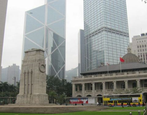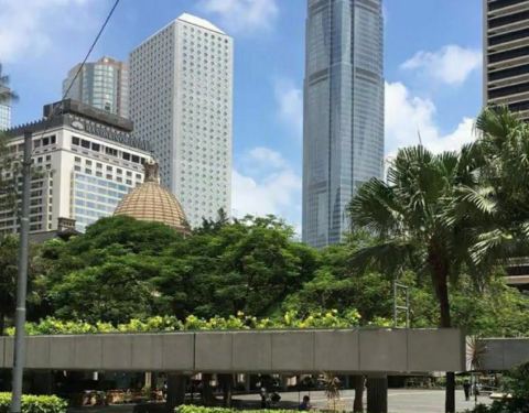 中环闹市中的一片开阔地,被多个知名地标建筑环绕,周日会有菲佣集会。