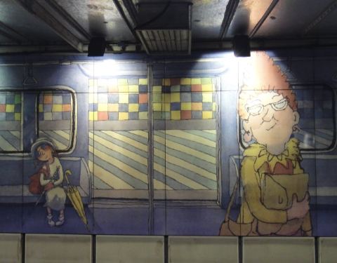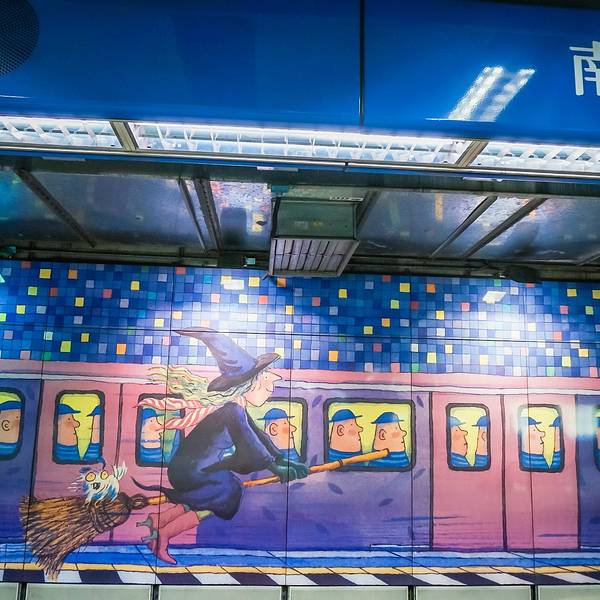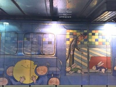 我们先直接坐到了捷运南港站,因为这里的墙上都是几米的漫画,不用出站就直接欣赏了,然后再坐返程的回去。
