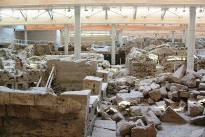 阿科罗提利是古希腊克里特文明时期留下来的古迹。一度被学者认为是消失了的亚特兰蒂斯居民曾在此居住过的证据。这座遗址可追溯到公元前16世纪,考古学家在这里发现了二三层楼高的建筑群、千年壁画以及复杂的水渠系统。