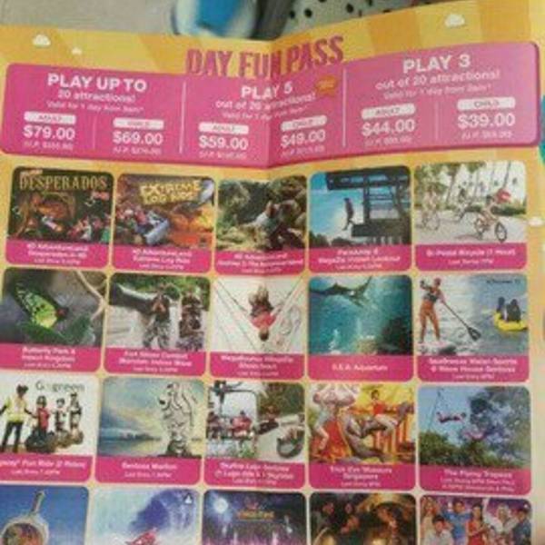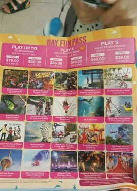 我们购买了岛上44元新加坡币的联票,可以玩20个项目,但只在1天内有效。事实证明,这联票十分划算,我们早上10点出门,一直玩到晚上9点多,玩了有13个项目。