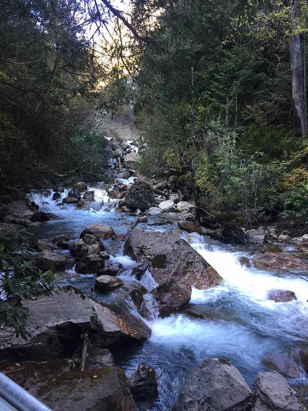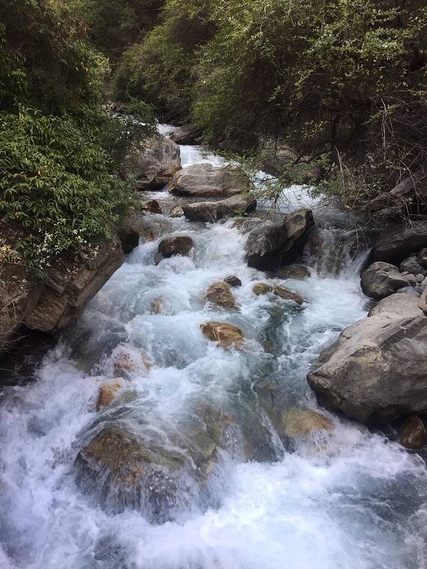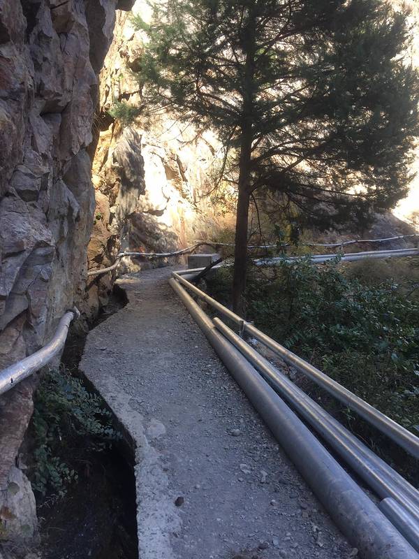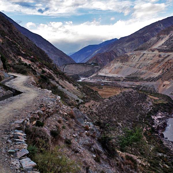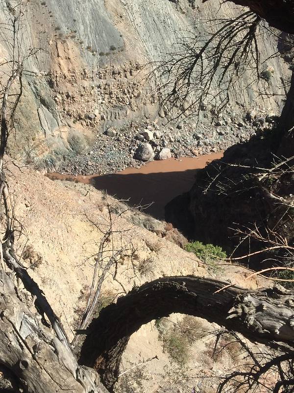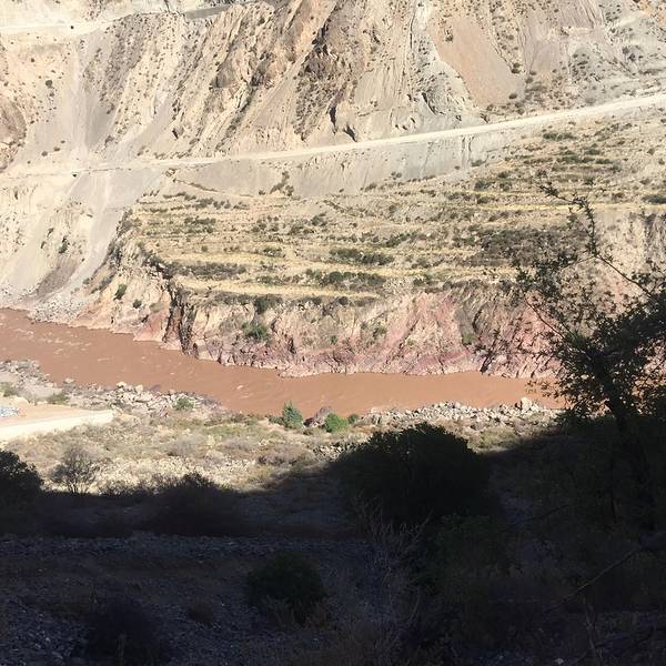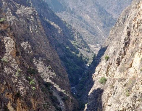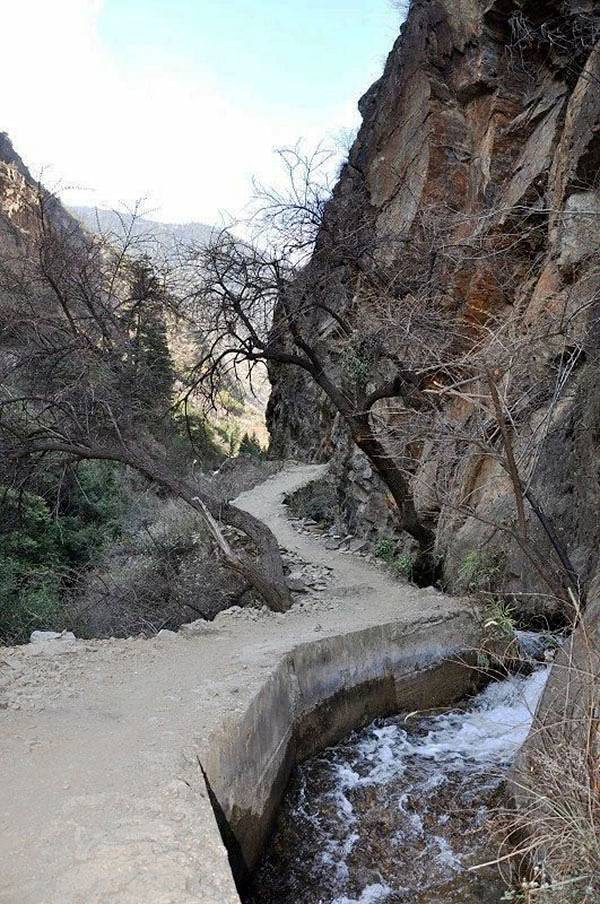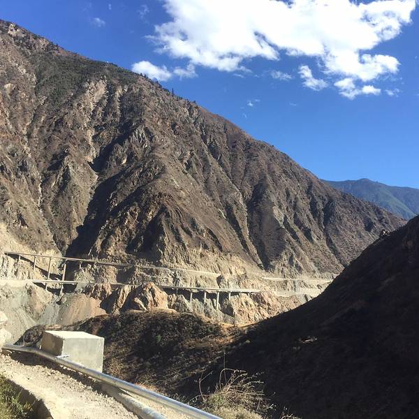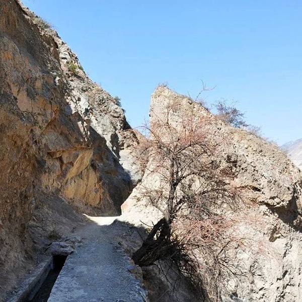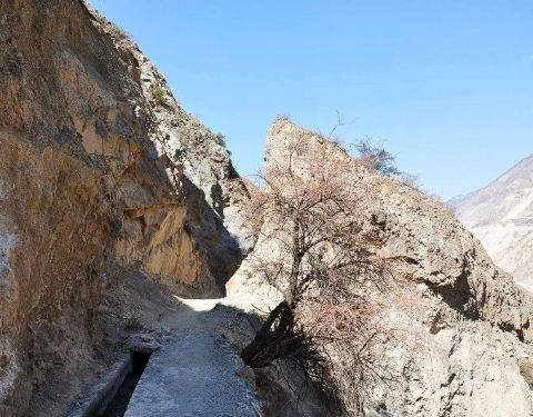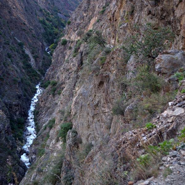 反过来想想要往上爬,我也没那么大的勇气。大段峡谷崖壁来了,右边就是绝壁上凿出的路,下面是滚滚流水……